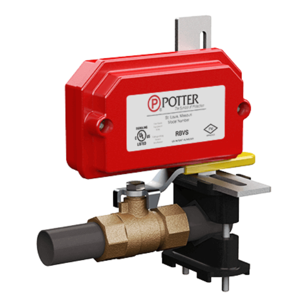 Potter RBVS is designed to monitor the fully open or closed position of a ball valve installed in a sprinkler system as well as monitor the position of a coil on a solenoid for a preaction/deluge system. The unit will fit on most ball valves installed on back-flow-preventers and alarm trim lines of dry, alarm, and deluge sprinkler valves. The switch operates if the ball valve handle is moved from the normal position. However, the switch does not track the position of the handle or ball. When the ball valve handle is under the RBVS plunger, a spring-loaded actuator will contact the valve handle. When the handle is moved from the position, this actuator extends to the tripped position, and the RBVS contacts change state, thereby opening or closing a circuit.