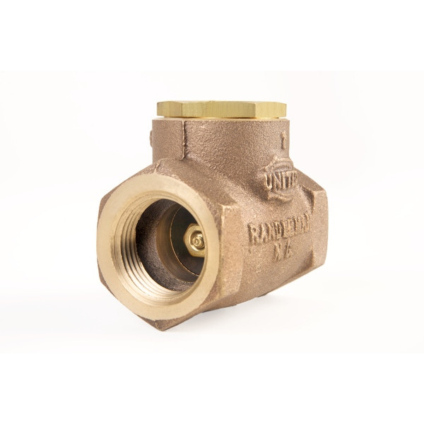 United Brass Works Model 99S-40 is part of the 99S Series swing check valves — a threaded bronze check valve designed to allow fluid to flow in one direction only and prevent backflow in piping systems. It features a bronze body with threaded (NPT) ends, an integral seat and soft disc for reliable sealing, and is 100 % pressure tested for quality assurance. The valve is typically rated for 200 psi WOG (water, oil, gas) at up to 180 °F maximum temperature, and must be installed in the horizontal orientation (not on its side) with a clean seat to ensure proper operation. These valves are suitable for use in water, oil, air, and gas applications but are not recommended for pulsating or vibrating service and are not intended for potable water systems because they contain lead.