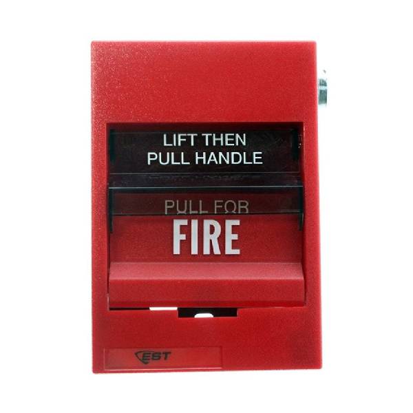 Edwards SIGA-278 Double Action Fire Alarm Station is an addressable, normally-open, dry contact signal initiating device that requires two user actions to initiate an alarm. First, the upper door marked LIFT THEN PULL HANDLE must be raised to access the alarm handle. Second, the alarm handle must be pulled to initiate an alarm. The single input module mounted on the back of the unit supervises the station and sends an alarm signal to the Signature controller when the switch is closed (i.e., when the handle is pulled)