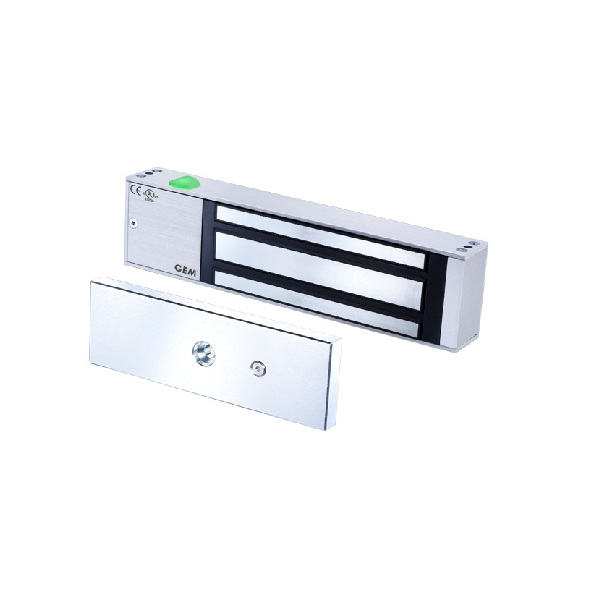GEM-1200 electromagnetic lock features a powerful reversible magnet for both left & right-handing doors, a strong armature plate, and a new, patented style mounting plate. The zinc plating and aluminium anodized casing complement the design of the lock and protect it from corrosion, rust, and dust. The increased thickness of screw holes in the mounting plate adds more stability, immobility, and strength to the lock structure. Thereby making the device capable of holding doors weighing up to 545kg with remarkable efficiency and no regular maintenance requirements.