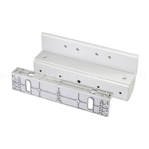 LZ-GEM-600 is an auxiliary mounting bracket kit designed for use with their GEM-600 series electromagnetic locks. This bracket is specifically used for installing the lock on inswing doors. The LZ bracket consists of two parts, an L-bracket and a Z-bracket, which together facilitate proper mounting of the electromagnet and armature plate on doors that open inwards.