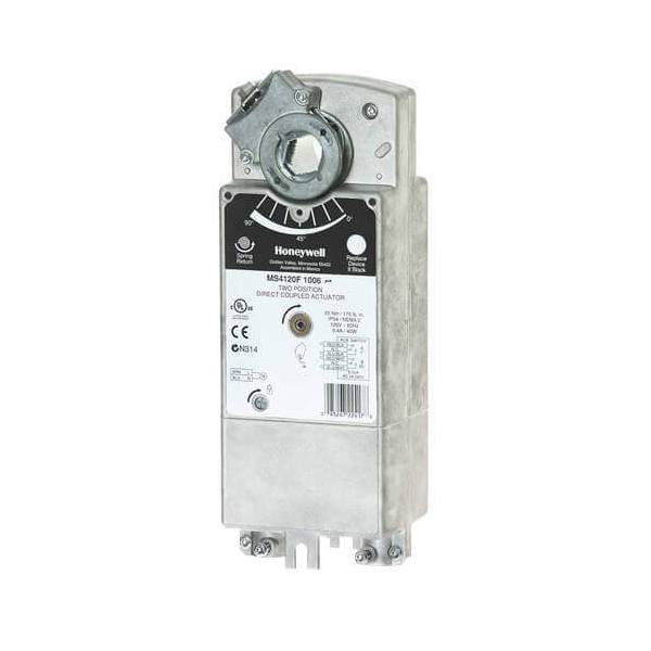 Honeywell MS4120F; MS4620F,S; MS8120F,S; S2024-F, and S20230-F Fast-Acting, Two-Position Actuators are spring return direct coupled actuators (DCA) for on/off damper control. The actuator accepts an on/off signal from a single-pole, single-throw (spst) controller. Reversible mounting allows actuator to be used for either clockwise (cw) or counterclockwise (ccw) spring rotation.Designed to operate reliably in smoke control systems requiring Underwriter’s Laboratories Inc. UL555S ratings up to 350°F, if applicable.