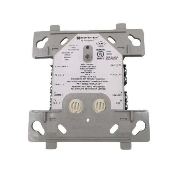 Notifier FRM-1.. Relay Module, The FRM-1 Addressable Relay Module provides the system with a dry-contact output for activating a variety of auxiliary devices, such as fans, dampers, control equipment, etc. Addressability allows the dry contact to be activated, either manually or through panel programming, on a select basis. FlashScan® (U.S. Patent 5,539,389) is a communication protocol developed by NOTIFIER Engineering that greatly enhances the speed of communication between analog intelligent devices. Intelligent devices communicate in a grouped fashion. If one of the devices within the group has new information, the panel CPU stops the group poll and concentrates on single points. The net effect is response speed greater than five times that of other designs.