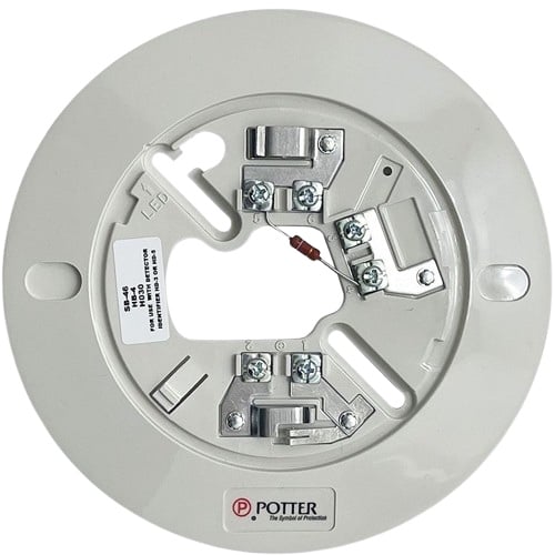 SB Series is a 6” polarized base with annunciator output featuring a current limiting resistor, and a blocking diode to enhance annunciator function. The SB Series Smoke Detector base is designed specifically for use with the Potter Smoke Detector Models, CPS-24, CPS-24N, CPSD24V, and CPSHD-24H